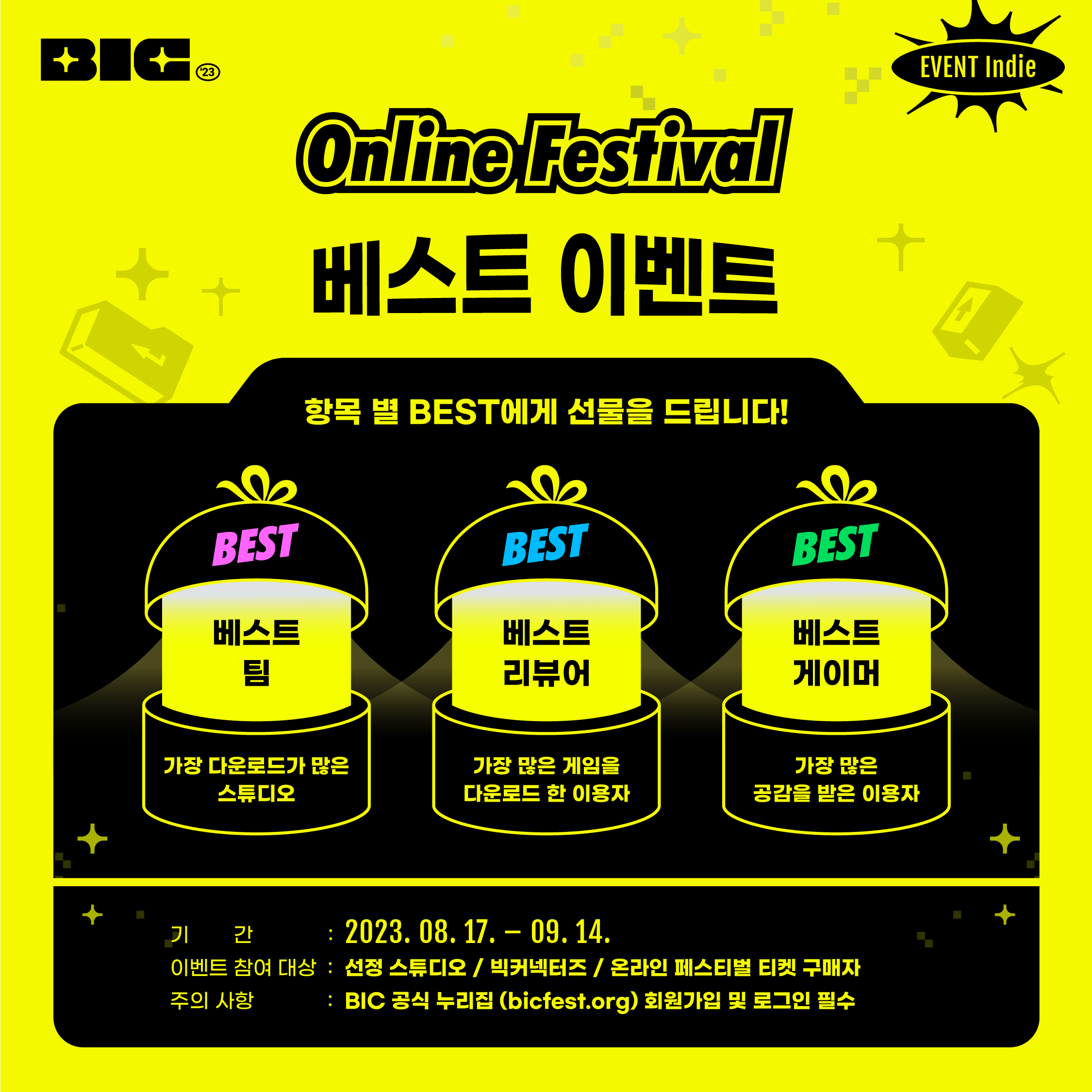 BIC 2023 온라인 페스티벌 기간을 더욱 즐겁게 보내는 방법, 온라인이벤트 를 공개합니다!