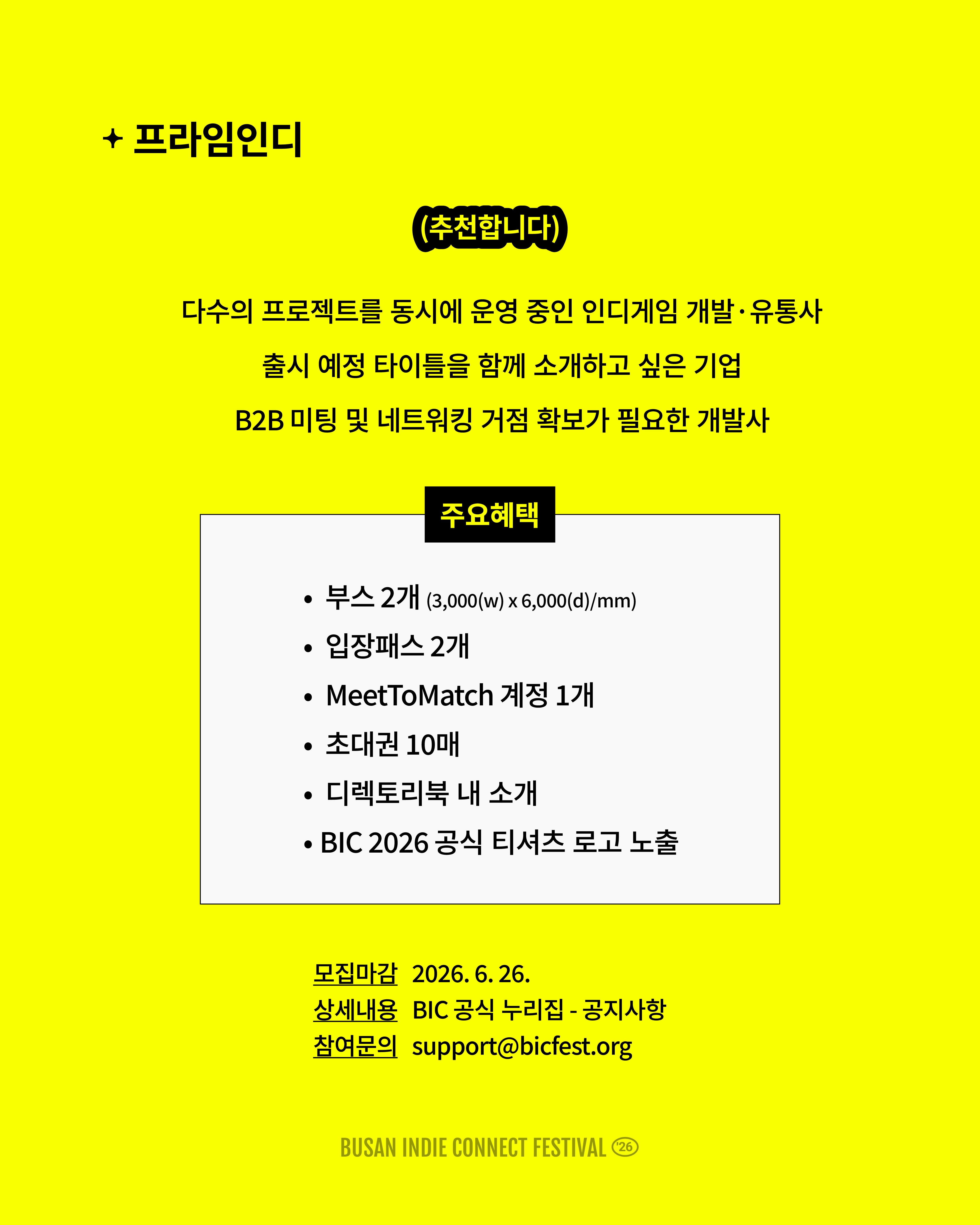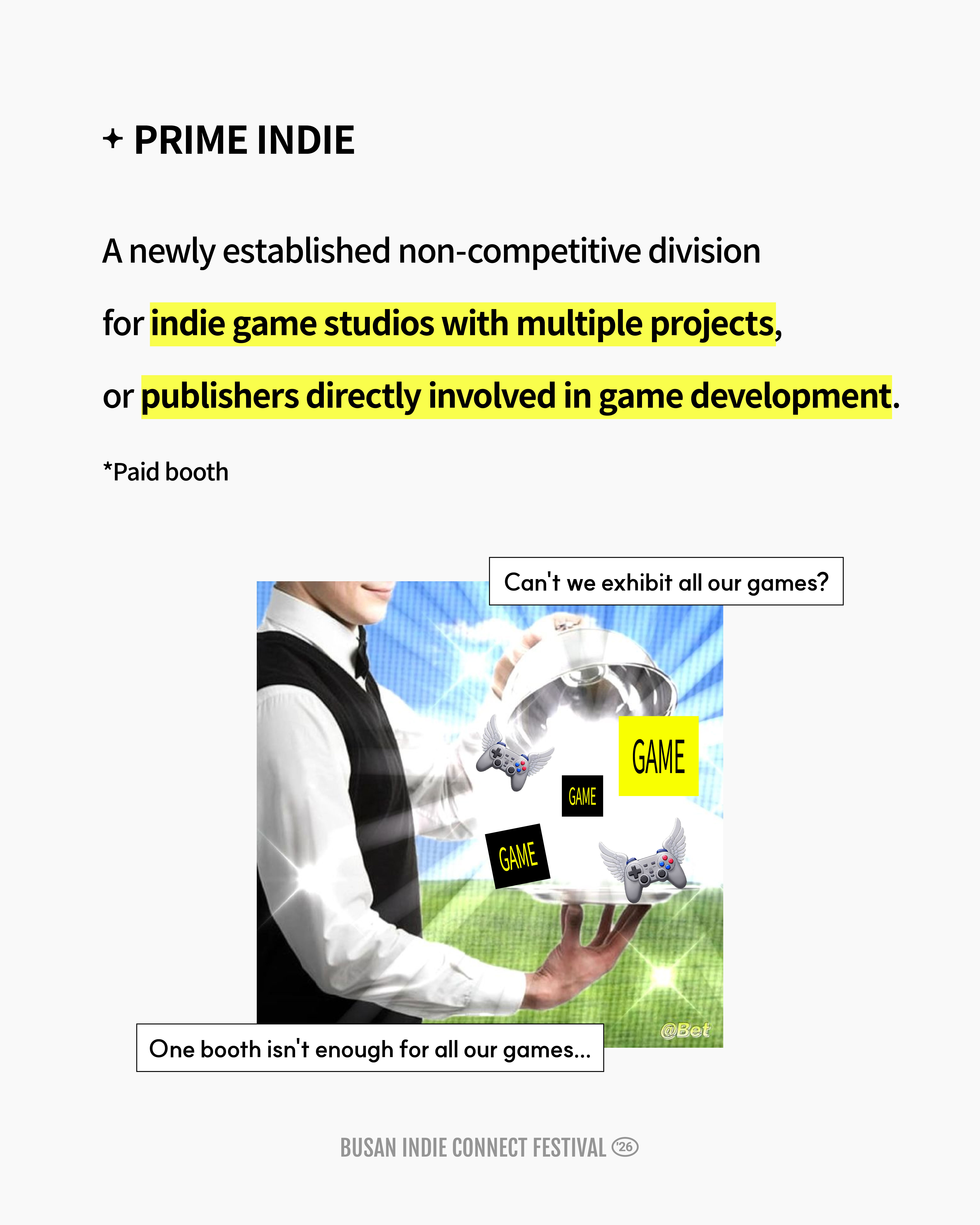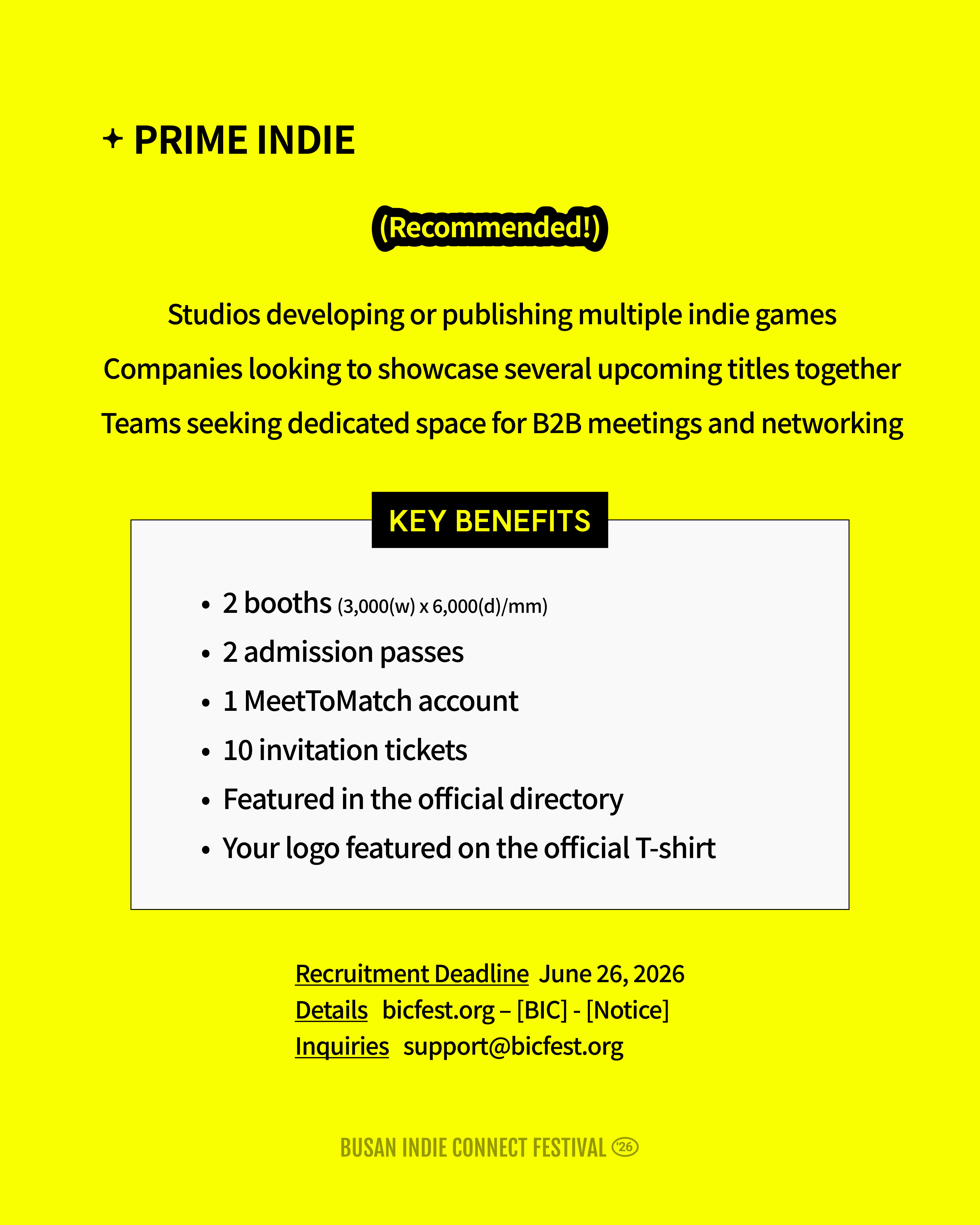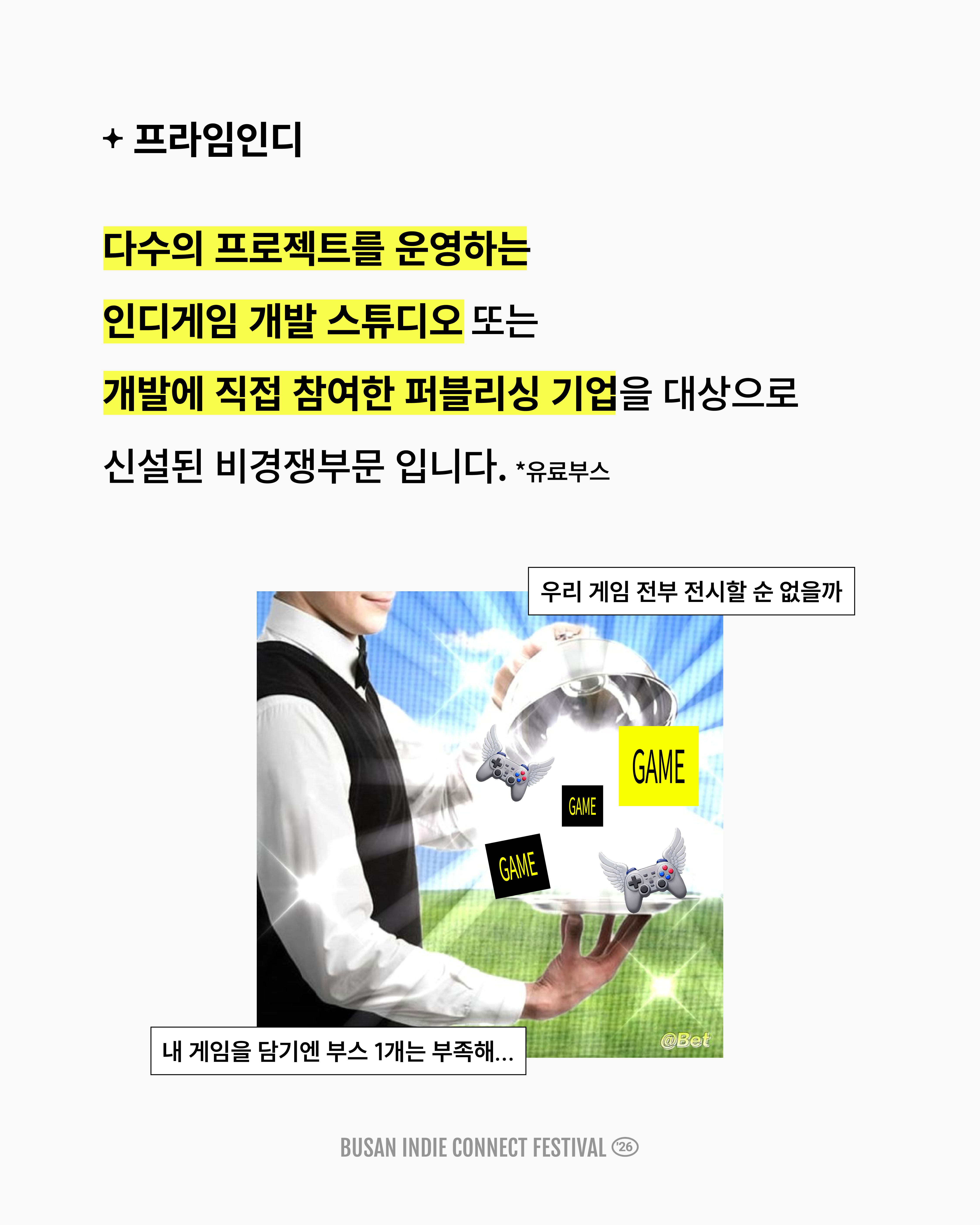 다수의 프로젝트를 운영하는 인디게임 개발 스튜디오 또는 개발에 직접 참여한 퍼블리싱 기업을 대상으로 신설된 비경쟁부문